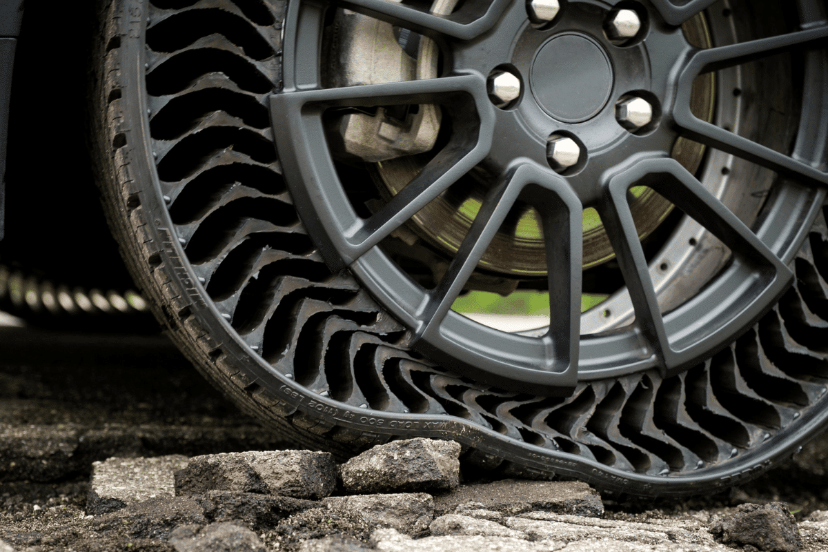 A Michelin desenvolveu o Uptis, um pneu airless (sem ar) que elimina a necessidade de calibragem e o risco de estouro por perfuração. A estrutura é composta por raios flexíveis de borracha e fibra de vidro, que oferecem resistência e flexibilidade. A previsão é que esse modelo chegue ao mercado em breve, trazendo uma verdadeira revolução para motoristas e frotistas, que não precisarão se preocupar com pneus murchos.